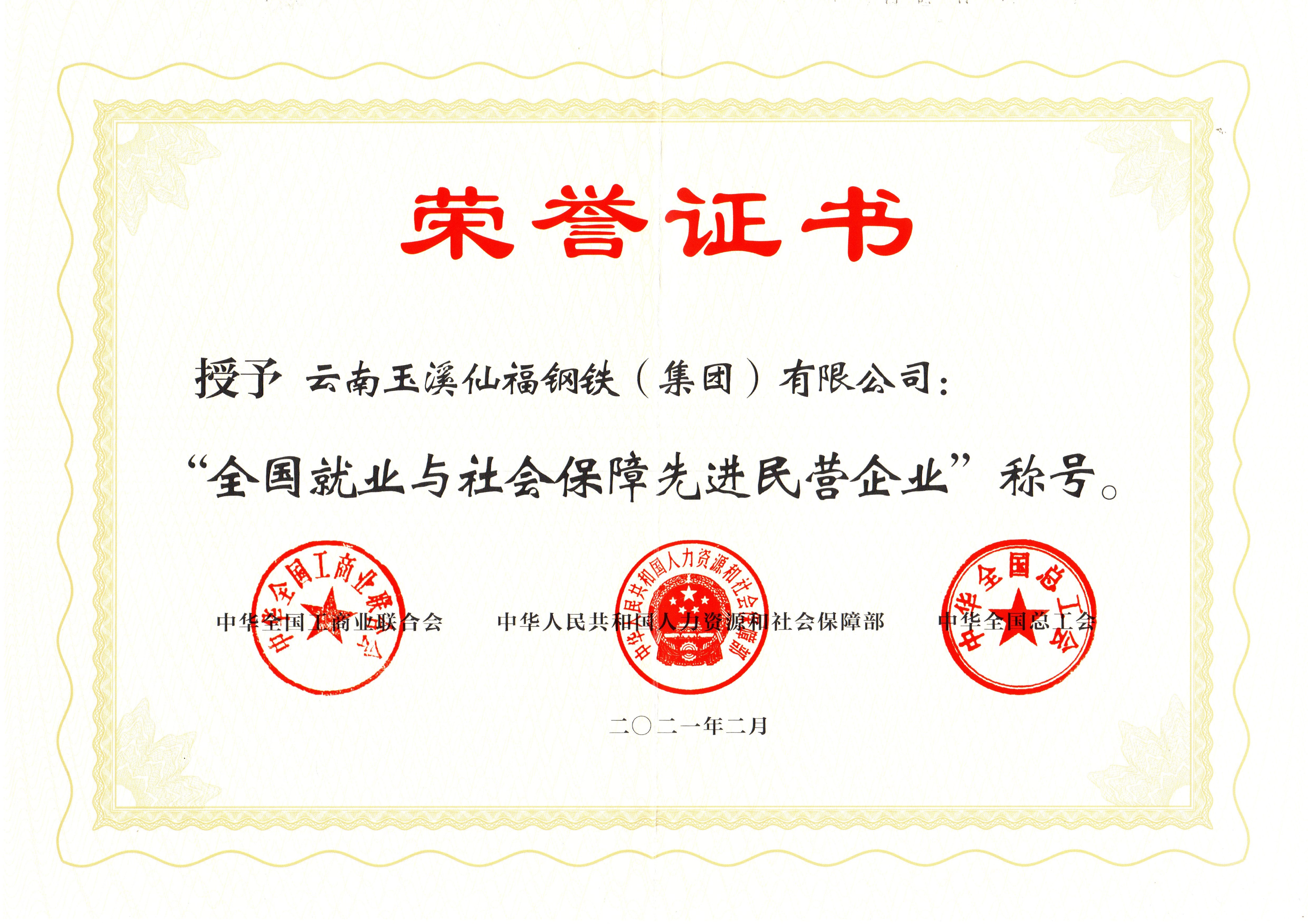 全國就業(yè)與社會保障先進(jìn)民營企業(yè)